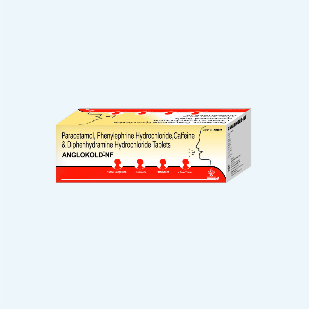 Paracetamol 500mg + Phenylephrine 5mg + Caffeine (Anhydrous) IP 30mg + Diphenhydramine IP 25mg (DOUBLE LAYER) MRP: 68.43 PACKING: 10’S