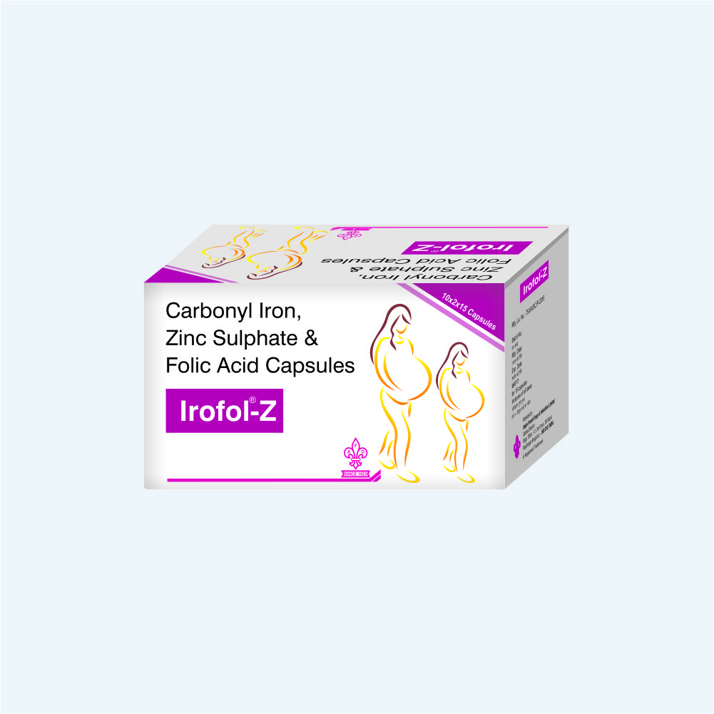 Carbonyl iron 50 mg + Zinc sulphate 61.8 mg + Folic acid .5 mg (MONO CARTON) MRP: 121.69 PACKING: 15’S